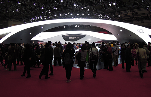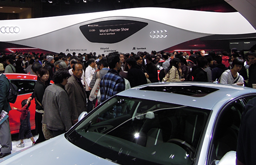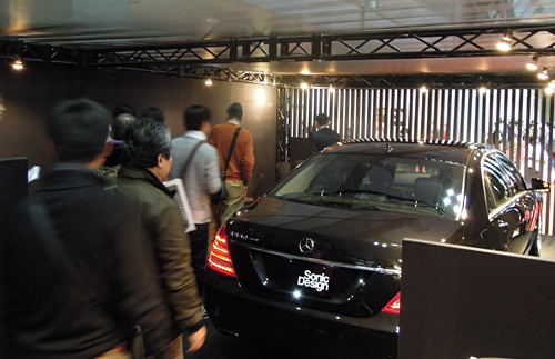 24年ぶりに東京へ場所を移して開催中の「第42回東京モーターショー2011」もいよいよ終盤に突入。今回で5回目の出展となるソニックデザインブースも、おかげさまで連日多くのお客様にお越しいただいています。私たちのブースの目玉は、何といってもメルセデスを代表する最高級(jí)セダン「Sクラス」専用に開発された純正オプショナルサウンドシステムの「S-Class Sound Suite」。リアシートに座るVIPのためのオーディオ、というコンセプトを皆様に體験していただけるよう、2012年モデルのS550ロングに搭載してブース內(nèi)に展示しています。今回は運(yùn)営上の都合で、ブース內(nèi)部は認(rèn)定販売店やメルセデスディーラーからご紹介のお客様を優(yōu)先してご案內(nèi)しているのですが、説明員と車両のスケジュールに空きがある場合は一般のお客様もご案內(nèi)させていただきますので、お聴きになりたい方はスタッフまでお?dú)葺Xに聲をかけてくださいね(混雑狀況によりご希望に添えない場合はご容赦ください)