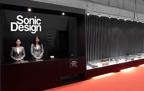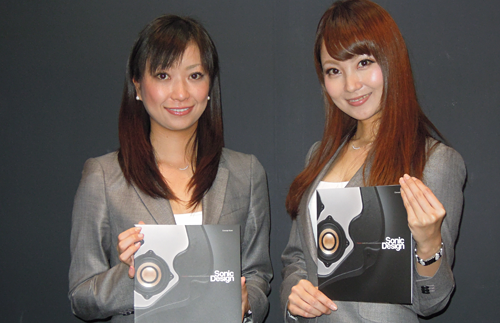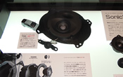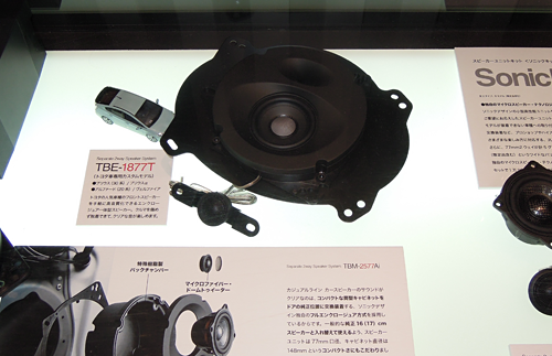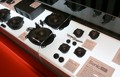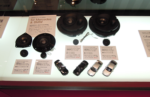 ブース前のショーケースには、おなじみのソニックデザイン製品に混じって、車種別専用スピーカーシステムの新シリーズ(參考出品)がさりげなく展示されています。これらはメルセデスの現(xiàn)行型EクラスとCクラス、BMWの現(xiàn)行型5シリーズと3シリーズ(X1にも対応)のフロントスピーカー交換用で、來年の発売に向けて開発中です。音の良さはもちろん、車両の価値を損なわない取り付けやすさとリーズナブルな価格も目指していますのでお楽しみに。