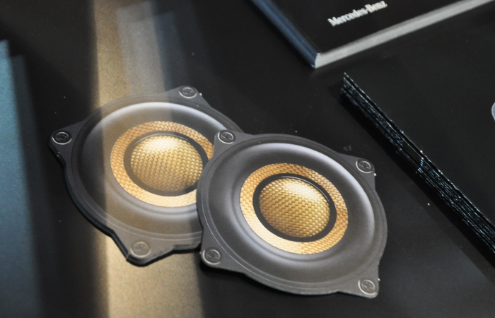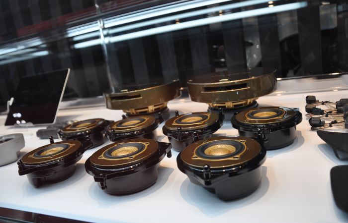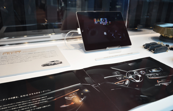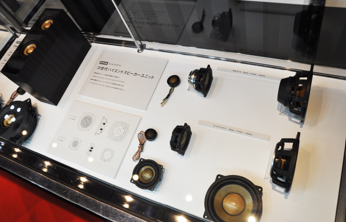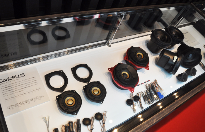 另外,與展臺(tái)并設(shè)的展柜中展示著很多新產(chǎn)品。除上述SonicPLUS THE CREST系列外,梅塞德斯-奔馳S/E/C級(jí)專用揚(yáng)聲器套裝SonicPLUS CUSTOM,寶馬用升級(jí)版,豐田86用,斯巴魯用等SonicPLUS產(chǎn)品也齊聚一堂。安裝后就看不見的產(chǎn)品背后,散發(fā)出只有高品質(zhì)品牌才有的質(zhì)感。更會(huì)加深人們對(duì)聲麗創(chuàng)音一貫倡導(dǎo)的「讓喇叭更小更好」這一理念的理解。