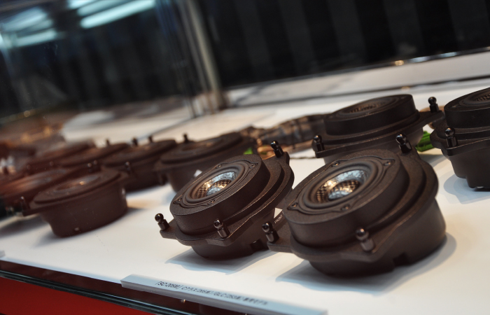 那么「汽車音響的回歸原點(diǎn)」是什么呢?把喇叭作為汽車音響主體和永恒主題的聲麗創(chuàng)音,這次也回歸初心,通過展品向世界傾訴其技術(shù)和魅力。最近,由于數(shù)碼終端等媒介的普及,播放音樂的方式方法大幅增加。汽車廠商原裝AV器材的進(jìn)化也令人矚目。但無論多么方便先進(jìn)的系統(tǒng),主角的喇叭系統(tǒng)如果上不去,“好聲音”是不會(huì)出來的。所以這次聲麗創(chuàng)音要展現(xiàn)的主題是「高端喇叭制造商」。