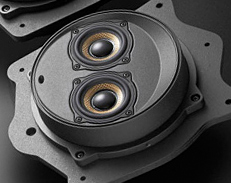 分別在車前后門安裝性能相同的揚聲單元「D52SSR Unison-Array」(圖片為車前門安裝單元),實現(xiàn)與高級轎車相稱的上乘音響效果。