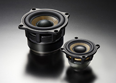 最配有永久磁石,在中高音域有卓越發(fā)揮的52毫米口徑全頻驅(qū)動器=SD-N52R型(右)和有超大型磁性材料迸發(fā)出巨大力量的77毫米口徑低音揚聲器=SD-N77R型(左)。每一種都使用HAC振動板來達(dá)到音色的統(tǒng)一,而且都是一組兩個配合使用。