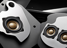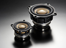「The Suite」系列產(chǎn)品中的一種揚(yáng)聲組合。左為口徑52mm的寬頻驅(qū)動揚(yáng)聲器「SD-N52N」,右為口徑77mm中低音揚(yáng)聲器「SD-N77N」。