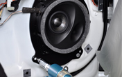 そこでソニックプラスセンターでは、クイックピットでの取り付けをご依頼いただいたお客様を対象に、SonicPLUS製品の初期エージングサービス*2を提供しています。このサービスは、ご注文のSonicPLUS製品(スピーカー)を専用のエージング臺に裝著して規(guī)定時間の初期エージング処理を行った後、お客様の車両に取り付けるというもので、初期エージングが完了した狀態(tài)のSonicPLUSとともに車両をお引き渡しすることができます。新品時からの初期エージングを適切な方法で行うことで、納車時點から一定水準の音質(zhì)でお楽しみいただける*3ほか、思わぬトラブル(たとえば新品狀態(tài)のユニットに過大な音量を印加すると磁気回路や駆動部などに大きなダメージを與える恐れがあります)の防止にもつながります。